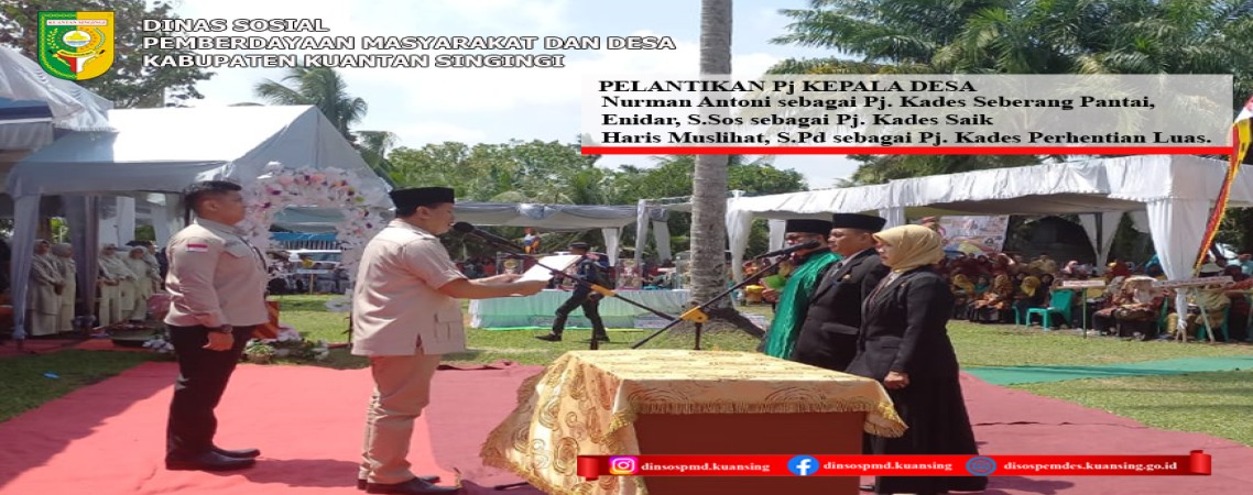 Pada kegiatan pelantikan tersebut beberapa Pj Kades yang dilantik yaitu, Nurman Antoni sebagai Pj. Kades Seberang Pantai; Enidar, S.Sos sebagai Pj. Kades Saik; dan Haris Muslihat, S.Pd sebagai Pj. Kades Perhentian Luas.